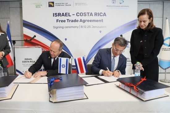 إسرائيل وكوستاريكا توقعان اليوم اتفاق منطقة تجارة حرّة