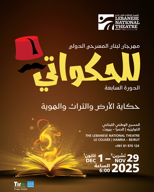 أعلنت جمعية "تيرو للفنون" و"مسرح إسطنبولي" عن برنامج الدورة السابعة من "مهرجان لبنان المسرحي الدولي للحكواتي"، والتي ستقام في الفترة الممتدة من 29 ولغاية 30 نوفمبر في المسرح الوطني اللبناني في مدينة بيروت في سينما الكوليزيه التاريخية، وفي 1 ديسمبر في المسرح الوطني اللبناني طرابس، وذلك تحت شعار "حكايات الأرض والتراث والهوية " بمشاركة الحكواتيين أحمد يوسف وايمان ابراهيم من مصر ،وبلال زيان وفضيلة أحمد بن صالح من الجزائر ،وحياة عبد الخالق التونسي ونتالي صباغ وسليم السوسي ورجاء بشارة وماري مطر ورنا غدار من لبنان، وعبر الانترنت يشارك كل من مريم معمر من فلسطين، وجلال التازي من المملكة المغربية، وجلال هميلة وهشام درويش تونس، وفاطمة الزاكي ونسرين النور من البحرين، وأدير فارس وهاجر بلعيد وفتحي عباسي من الجزائر .