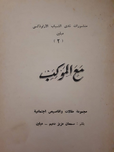 لم يكتفِ الشباب الارثوذكسيّ في عبلّين بقصب السّبق ، فعاد ليصدر الكتاب الثاني له والثاني في الوسط العربي والمقصود هو كتاب : " مع الموكب" للاستاذ والاديب الرّاحل سمعان عزيز دعيم الملقّب بِ " نجم الشهّر"