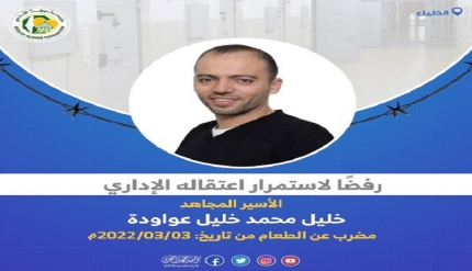مهجة القدس: الأسير خليل عواودة يواصل إضرابه عن الطعام