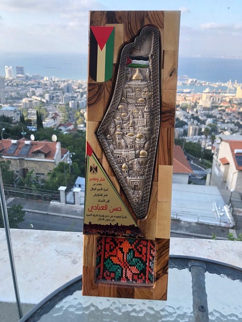 وفي الختام تم تقديم درع لعائلة الشاويش مقدم من مركز يافا الثقافي، كما قدمت لي عائلة الشاويش درعاً تقديريا أعتزّ به وأفخر.