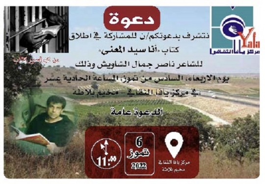 شاركت يوم الأربعاء 06.07.2022 بالاحتفاء بمولود آخر للحركة الأسيرة؛ للاحتفاء بنطفة محرّرة كبرت ونمت ونضجت وها هي بيننا في ديوان شعر بعنوان "أنا سيّد المعنى" للأسير ناصر الشاويش.