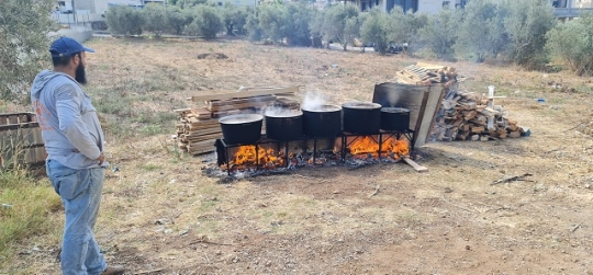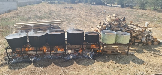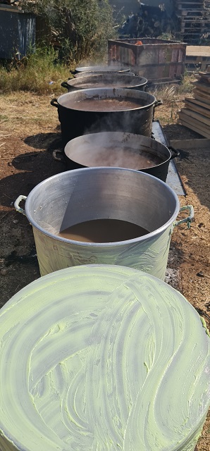 المرحلة الثالثة: يوضع الخروب في حلل كبيرة ويضاف إليه الماء حتى حين تحضيره.