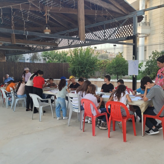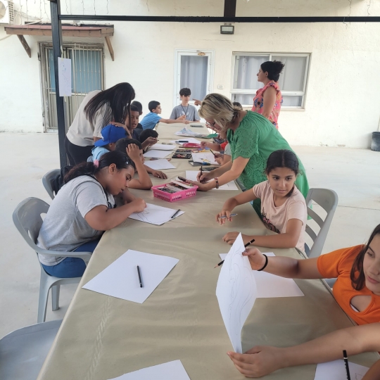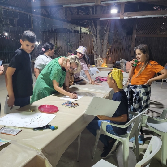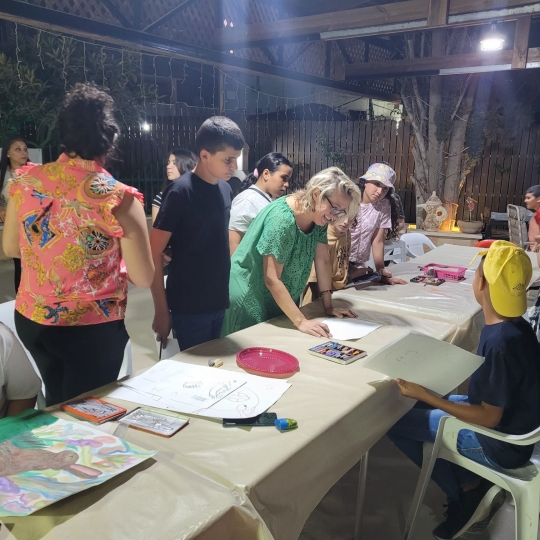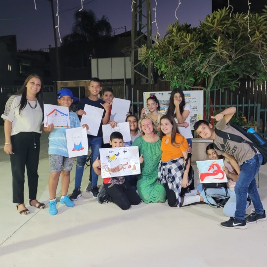 صور بعض اللوحات والمشتركين في ورشة الرسم...