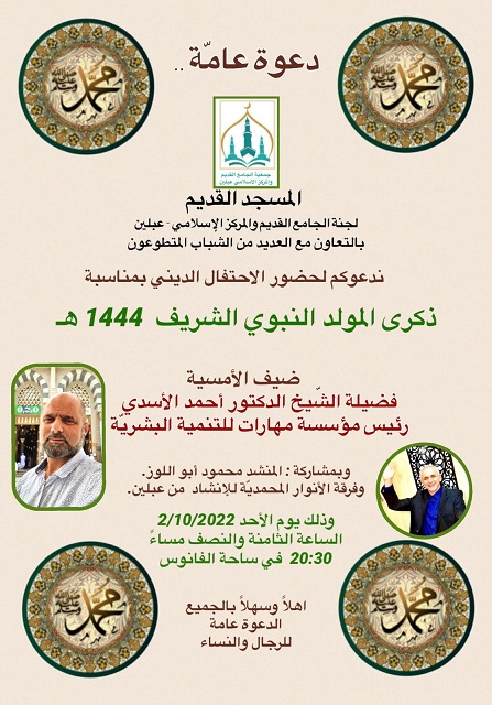 الاحد 2-10-22 الاحتفال الديني بمناسبة ذكرى المولد النبوي الشريف